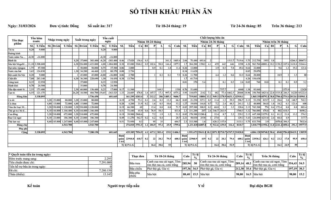 📊 3. Tính khẩu phần dinh dưỡng tự động